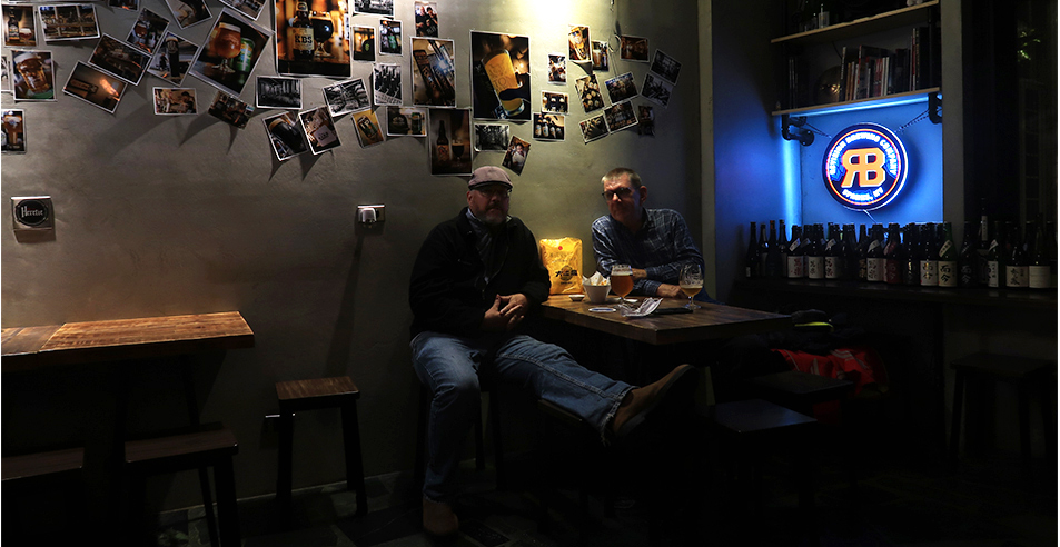 Ralph arrives and has the same IPA and he says it tastes a bit too fruity.