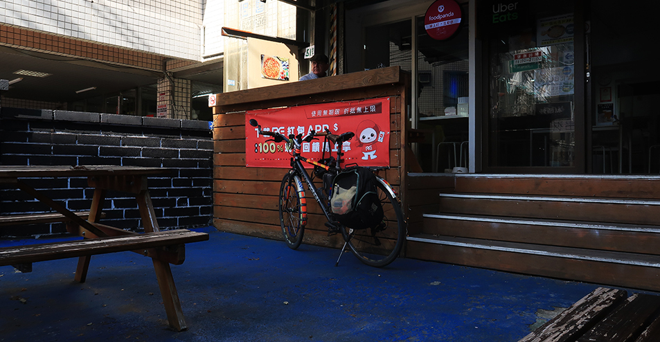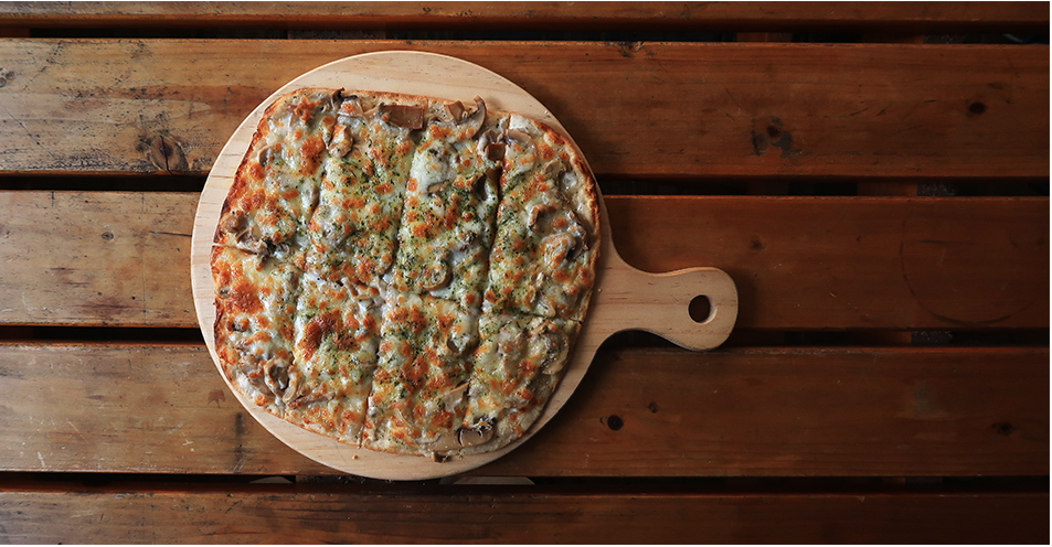 The German guy isn't at work today and I order a mushroom pizza and pay the equivalent of US$3.50 and sit at a wooden picnic-type bench outside in the sun and look down the street at scooters and people coming and going.