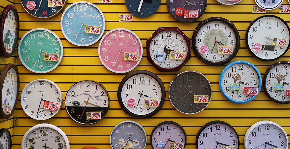 All the clocks on sale tell me it's gone 3:30 when I leave to go back to the ATM.