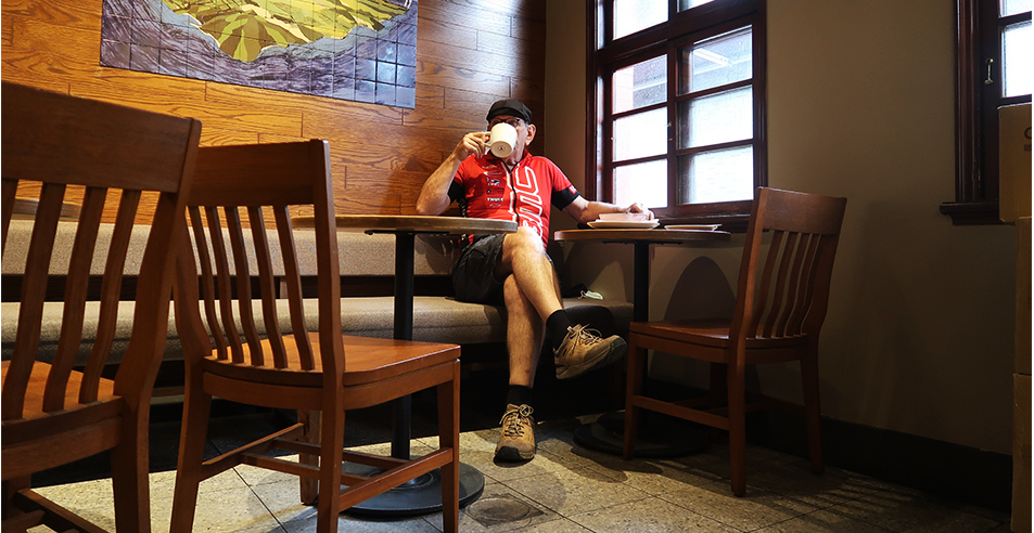It's on a corner, in a renovated building, and the clerk asks my name and Graham is hard for locals to understand, so I say it's Crazy and that's what she writes on the Post-it note that gets stuck to a mug. I dislike paper cups.