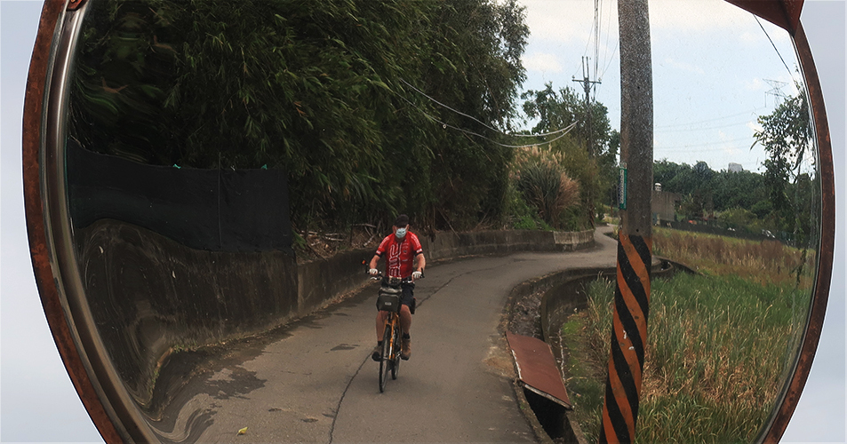 There's a lane I took once coming the other way and I ride along it, trying to retrace the route in reverse. It's alright for a while, but soon my bearings are gone again I'm lost on urban streets. They all look so similar in Taiwan.