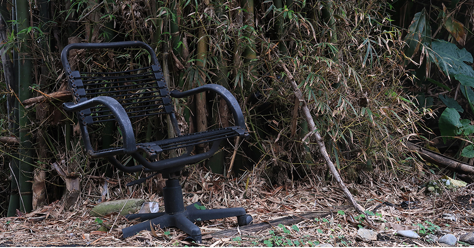 I spot another chair at the end of a drive to one farm and take a photo of the decrepit, office-type specimen. By the look of it, someone put it here a long time ago and just forgot about it.