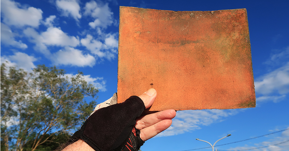 One abandoned house that I showed Andy back in 2017 has now completely vanished, with its mud bricks walls having disintegrated to such an extent there no way of know it ever existed. An adjacent building is look a bit worse than before with some of the thin clay roof tiles missing. I pick one up off the floor, which someone is till intact, and also spot an old brick. They go in my bar-bag and saddlebag.