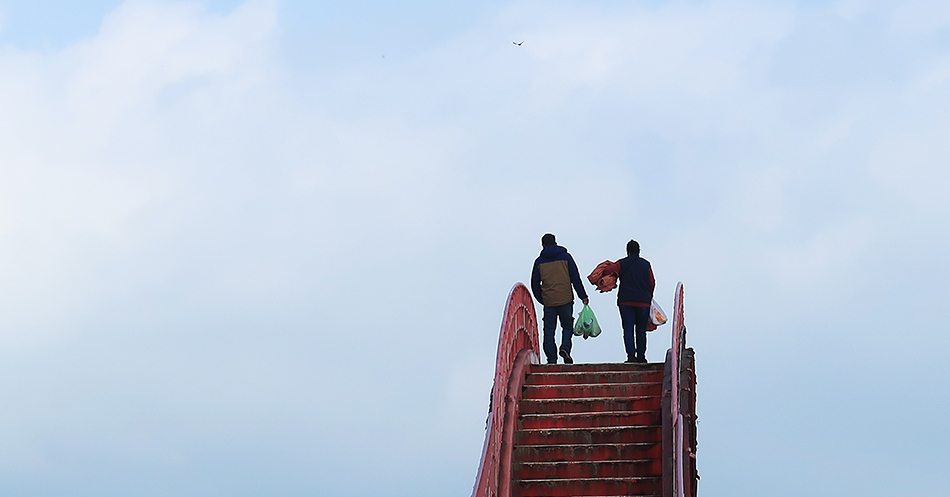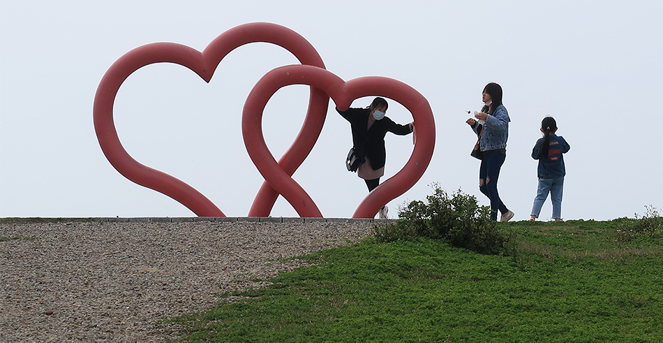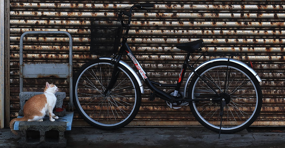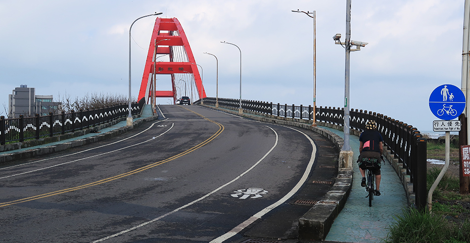 The industrial area ends at a bridge that arcs over what I assume is an estuary. Its metal has been painted primary red, as many are in Taiwan. Red is an auspicious colour in Chinese culture, so maybe that's why.
