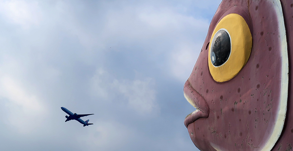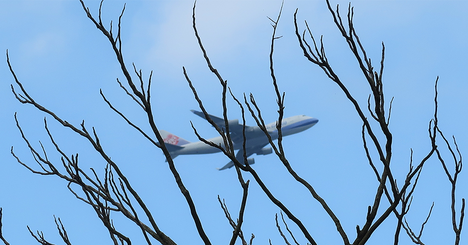 Airplanes are taking off at regular intervals from the international airport nearby and fly low overhead, looking to be going as slow as a car and somehow defying gravity. Their engines tell us they're there and I wonder if any passengers are looking out the windows and can see the three of us on bikes. It's possible.