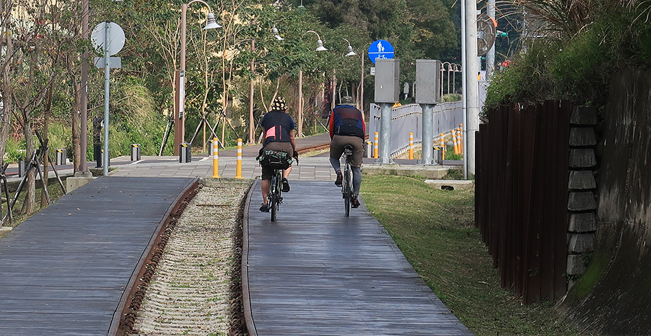 The cycle path is a mixture of wooden planks and sections of concrete. The old train rails have been incorporated into it for the most part and I think they used to transport goods from the coast into Taoyuan City, but the line got closed once the local road network improved. I guess the Japanese built it, before losing Taiwan in 1945, but maybe the Nationalists built it when they took over soon after. Clearly the local government has spent some serious cash transforming it all, but I've not found any online info' promoting it.