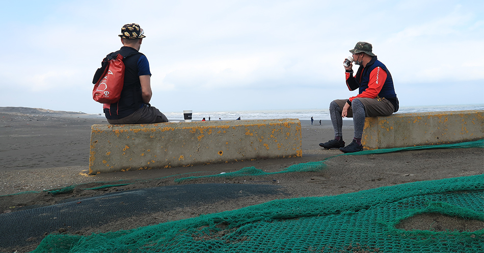 A wide-topped sea defense wall provides an easy route to follow, with generous views of the never-ending beach and the grey water on our right. It all looks a bit forlorn, with the sun now gone and rain looking a distinct possibility. We're exposed here.