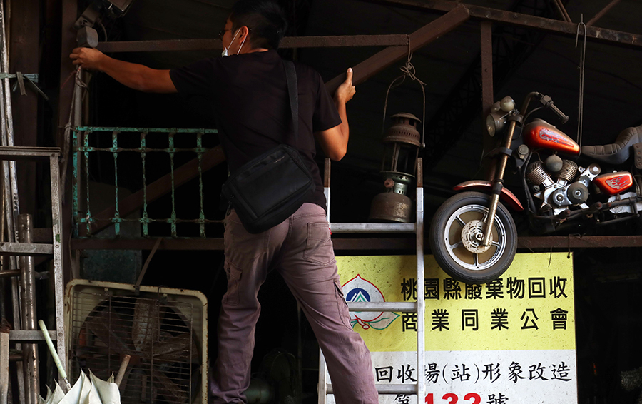Having got NT$500, the trio know I'm not a timewaster and seem happy to engage in a discusion about other grills, then the father points out one I'd missed. It's big - about 2 metres long - but stacked behind an assortment of scrap metal. It'll need a truck to get this thing home. Nevertheless, I know I'll be back before very long and ask for the son's name card so that Debbie can phone to see how much it'll cost etc.