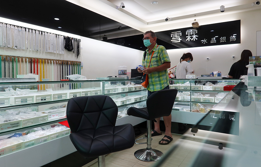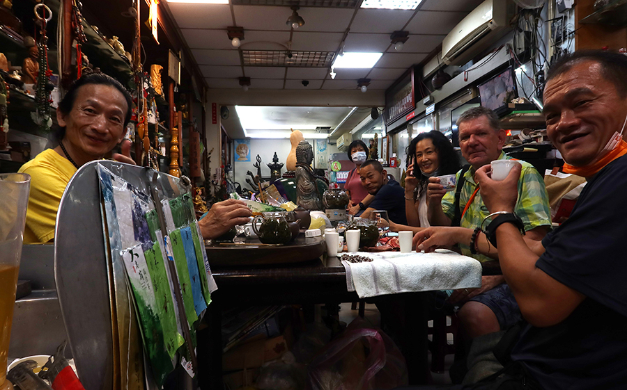 Unfortunately they don't have silver, or any metal beads - only ones made of jade and such like. During our three-way chat the owner has poured me a cup of green tea and invited me to sit with the others. It's like a social club and my cup keeps getting refilled and before I think about leaving, a women in her 30s calls in and joins the conversation.