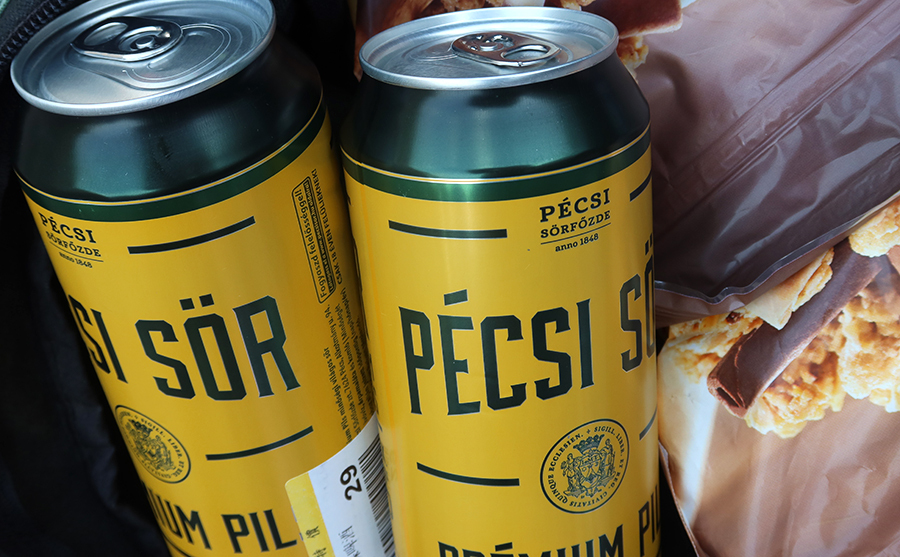 There's always something on offer and cans of beer and lager are discounted and I get two cans of pils. I know it's from Hungary by its name - Pecsi - because when I was a teen I had a penpal in Hungary and eventally flew over to see her. Once off the plane, I recall asking for a train ticket to Pecs - pronouncing it pecks - and not getting anywhere. That's because the city's name is pronounced pitch.