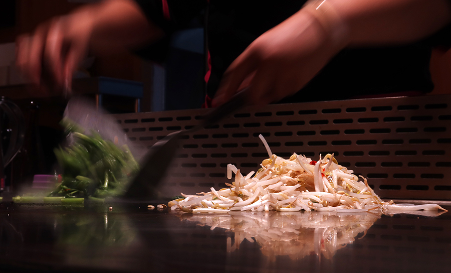There's a Carrefour supermarket just five minutes away and I ride there and go to the tappanyaki place and order fried chicken. There's only me sat at the long metal counter that serves at a hot plate and I watch the cook deftly toss my greens and bean sprouts around before getting stuck in.