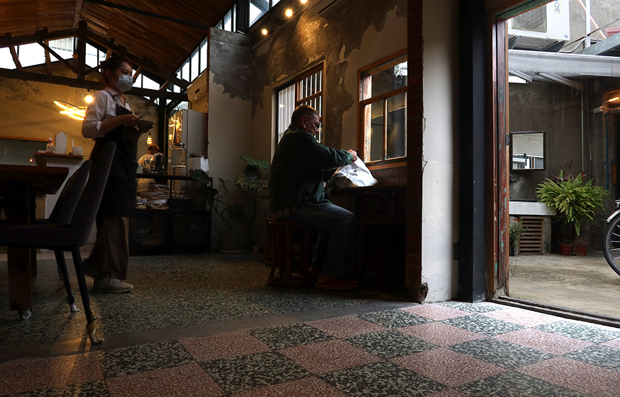 There are various coffee options on the way there - I'm cycling right through town - and opt for a place that has very nice cake. It's closest to home and next to the university, but hidden down a network of narrow passages. Its name escapes me and is likely just a Chinese one. It's an old, single-floor building.