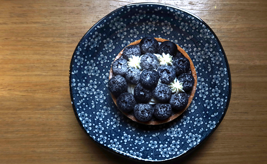 She shows me photos on Instagram of the cakes available and I choose one that looks like a tart topped with bueberries. She says it's got chocolate under them, so I've hit the jackpot. There's a bench seat by the wndow and that's where I sit and read a bit of a Mick Herron novel before heading off to the metal fab' place. It's about another 10 minutes' ride away.