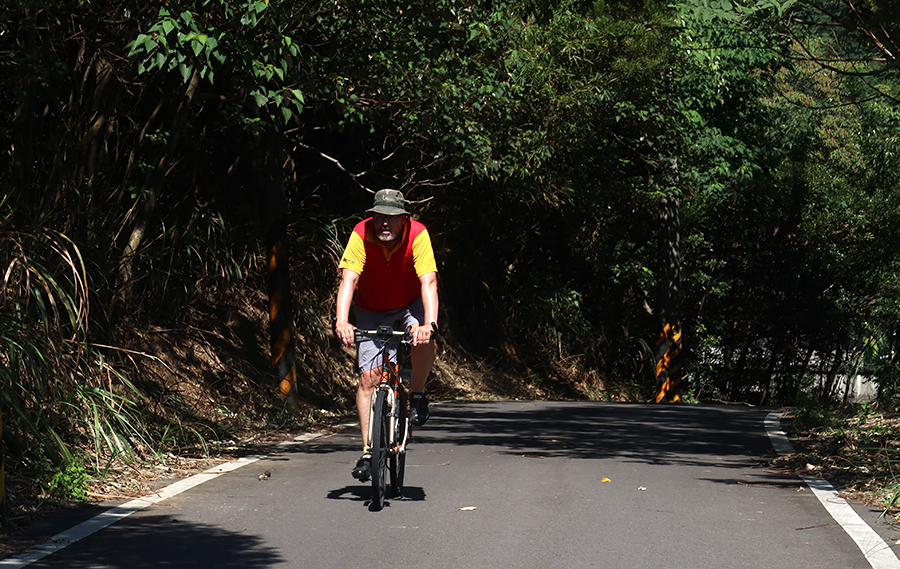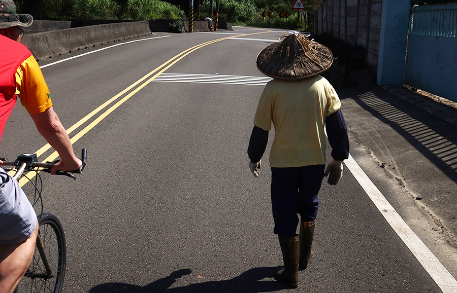 The wide road has a shoulder and that's what we ride along, not that the traffic is serious enough to cause concern. At one junction Ralph asks if I'm up for anther climb and I feel good, so up we go at a brown sign pointing to a peaceful spot named Jioucyonghu.