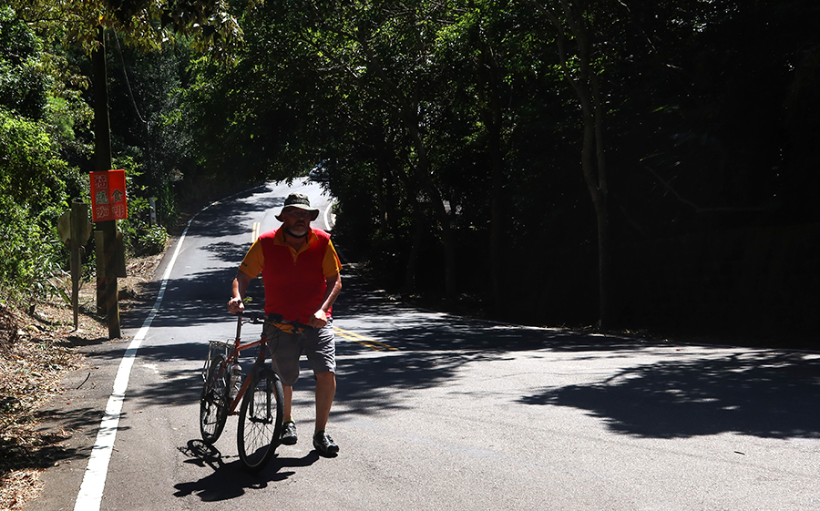 It's a bit steep in places, so much so that Ralph has to get off and push while my lowest gear gets my heart rate maxxed out. The temperature is about 30 now, but the whole climb is less than 3km and connects us onto route 13. This is a new one to me.