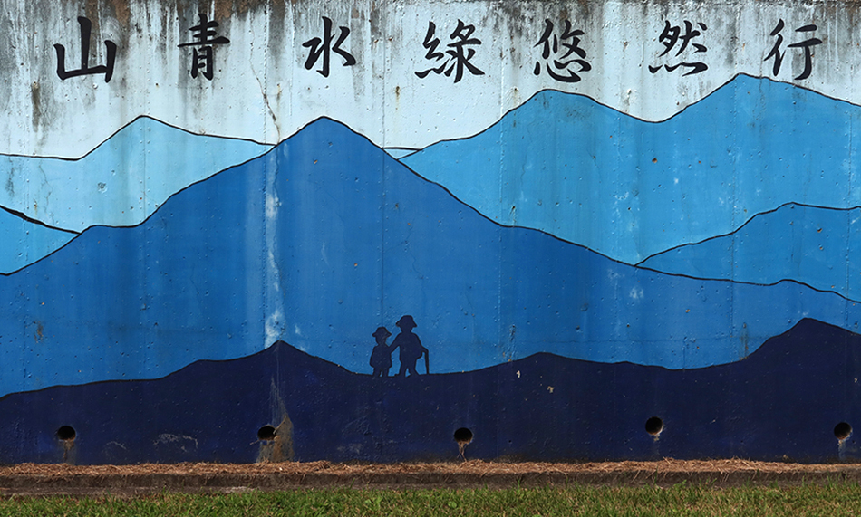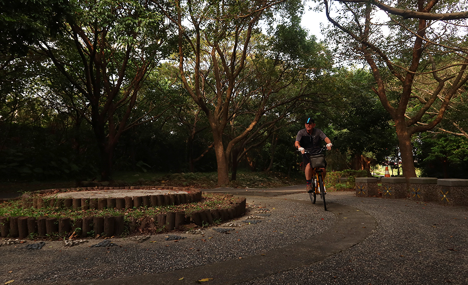 I get to the Dahan River that flows to Taipei and start riding upstream on a smooth bicycle path. It cuts through park-like places and runs beside stretches of grass before a short section of road takes me to route 114. After five minutes of that I've turned off and begin pedalling on a narrow lane that roughly follows a busy highway that's elevated above. There are no cars down here.