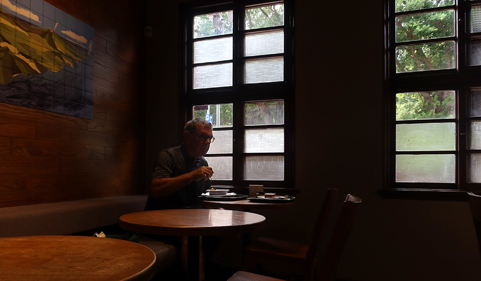 The intrepid Bill Weir is someone who's toured Taiwan a few times. He's back. We've vaguely arranged to meet in Yingge and I linger in Starbucks till 12:30, reading a Mick Herron novel, before cruising down the town's main tourist street that's lined with pottery galleries in the hope of bumping into him. He's cycled south from Taipei and I eventually spot him stuck at a red light at the bottom and lead him just up the street to an 85 Coffee place that has a few empty tables.