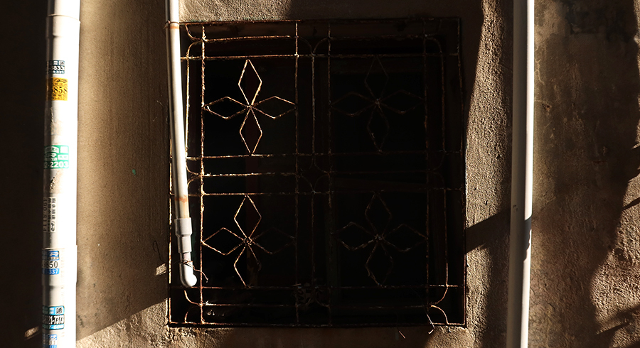 There's a house standing empty near the Carrefour supermarket close to home and the 3' x 3' metal grill to one of the rear windows is one I want. The sun looks like it's in the right place to cast some light on it so the plan is to take a snap and I make a detour to luckily find the agent showing a prospective buyer around.
