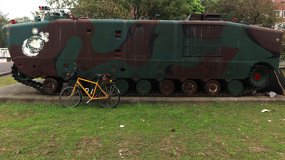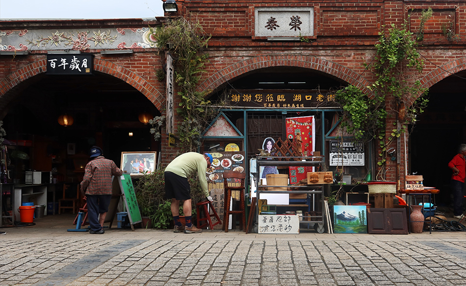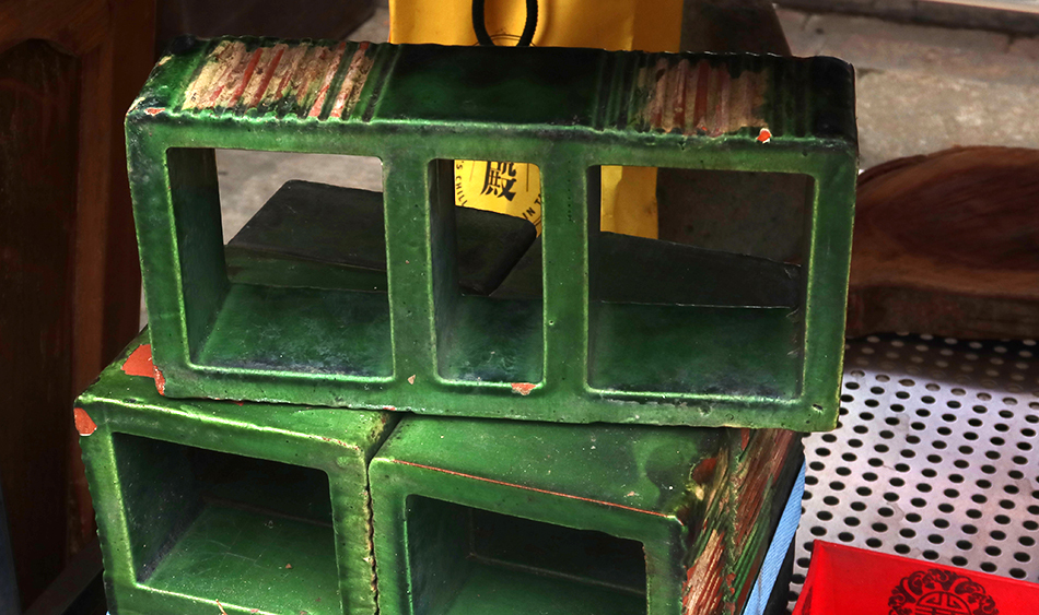 Refreshed, I venture towards the end of the street and stop at bunch of old stuff outside a shop. Some would say they're antiques, but it's just a mixture. There are six or more green-glazed bricks that would once built form ventilation and the women quotes me NT$200 each, which seems OK, and she wraps one up in newspaper and it goes in my saddlebag - just. There's not much space left with my red jacket stuffed in there, but at least it offers some additional protection.
