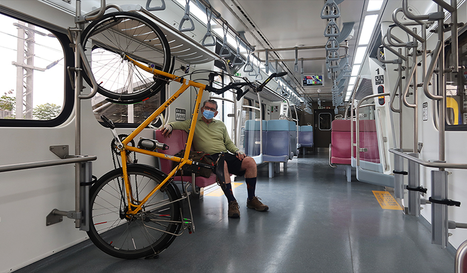 My ticket home comes to NT$50 for me and the bike - about US$1.70 - which is very reasonable for a 30-minute journey. In the UK, you could multiply that cost by five. There's a wait of over 30 minutes before my train comes, but that's fine, and there's only me in the carriage with the bike racks. I'll be home at around three.