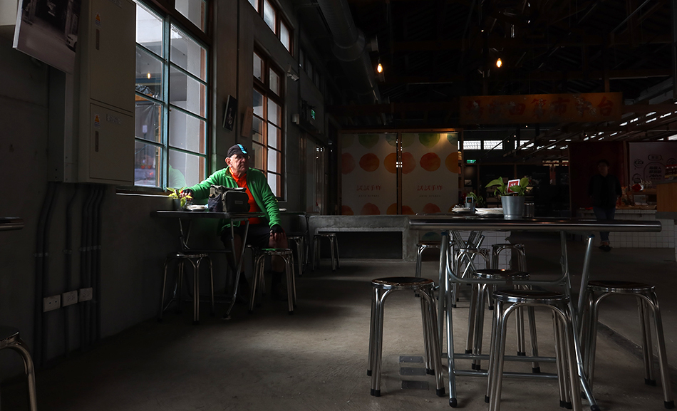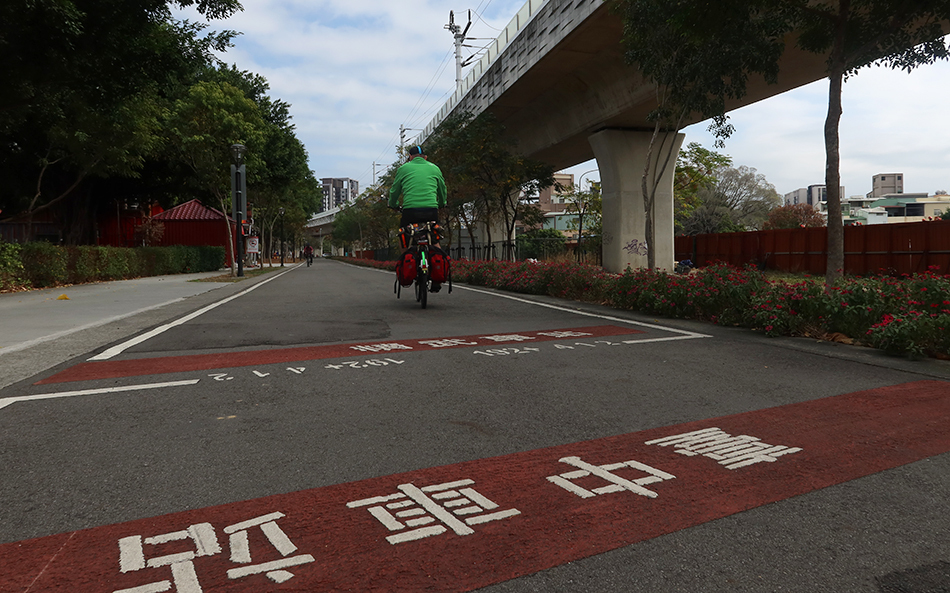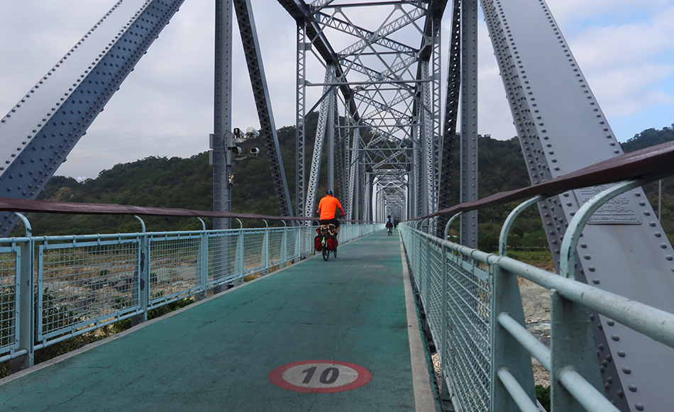 Once the bike path eventually fizzles out, signs point the way along side streets that are quiet. They duly lead me back to the old railway route and the path soon goes over a long steel bridge. Google Maps names it 'Old Mountain Line Dajia River Iron Bridge' and the river is way below. There are people out on speedy rented e-bikes and e-tandems, but not many. Next week it'll be bedlam.