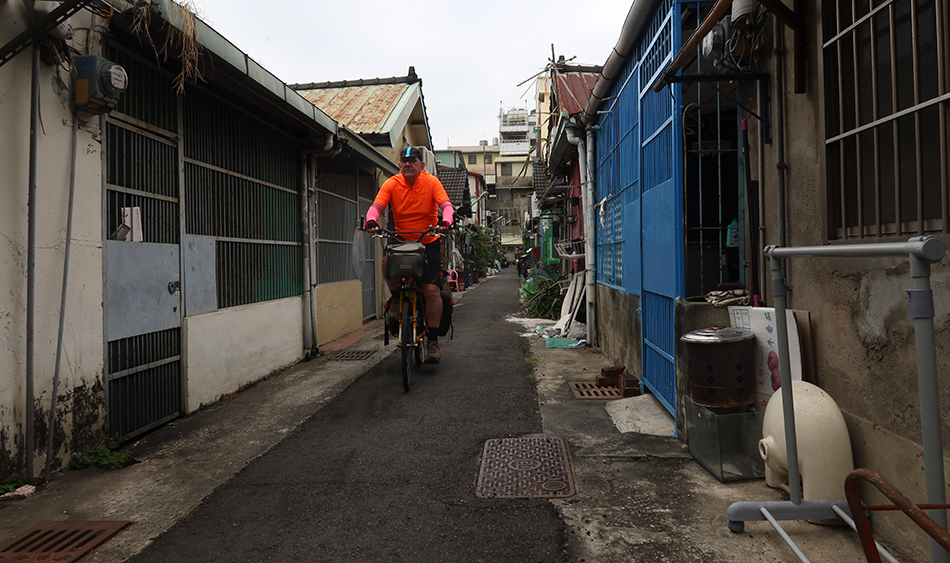 Not long after leaving the cafe, I notice some small alleys running off from the road parallel to the bike path. They are lined with single-floor homes that likely date back to when the railway track was laid and they could offer some photo opportunities, so I cross over to see if I can find anything.