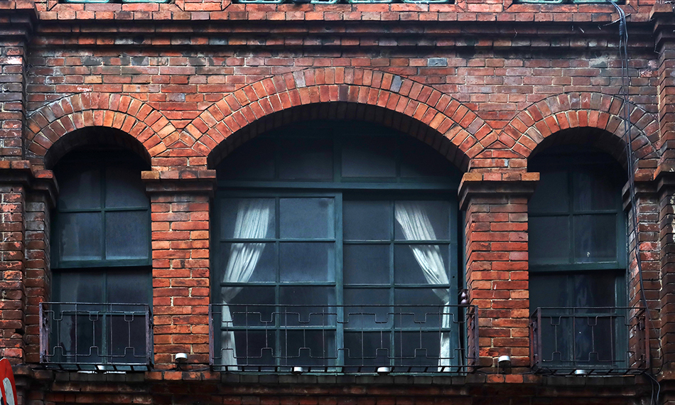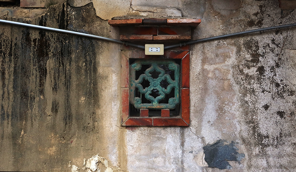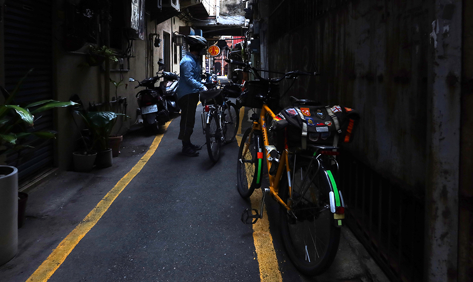 The first is said to be the first street built in the city, but it's really just an alley and having walked its short length, we find it doesn't contain anything historic. There's a row of century-old brick buildings facing it at the far end and I take a shot of some windows that have arched lintels before we ride past a temple and try to find a wooden building from the Japanese era (1895-1945).