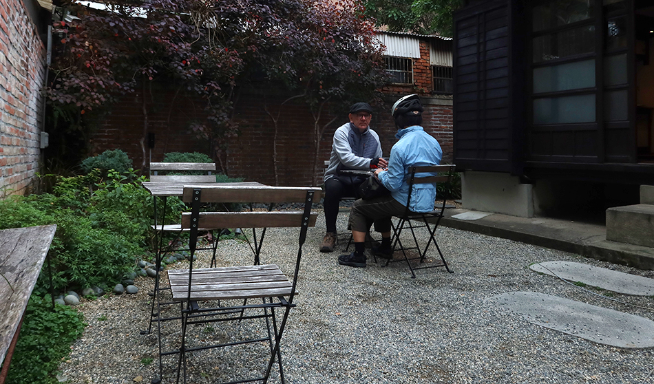 Debbie gets the location of the old Japanese place on Google Maps but we soon get a bit confused. It's down a small lane and I expect locals to know about it. Debbie asked one elderly woman outside her home, which must be no more than a street away, but she says she's never heard of it. Thanfkully a second local does know and he tells us where to turn, but we still ride past the alley's entrance. After doubling back, we head to its end and find that it's open - the place is a government-owner property that's been renovated and made into a cafe.