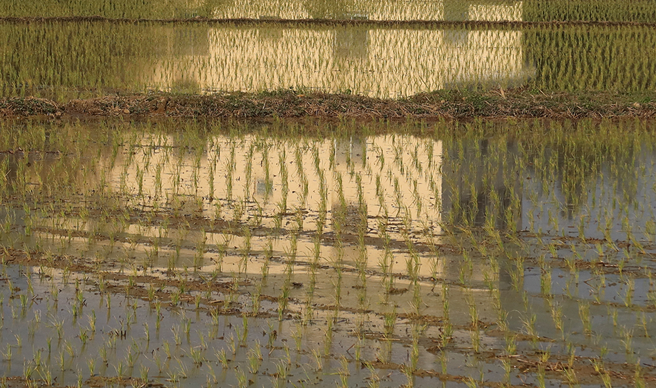 My younger brother messaged me yesterday and told me to stop taking boring snaps of rice fields and instead head to a beach, so when I see a rice field with a home reflected on the water, it occurs to me to get my camera out again.