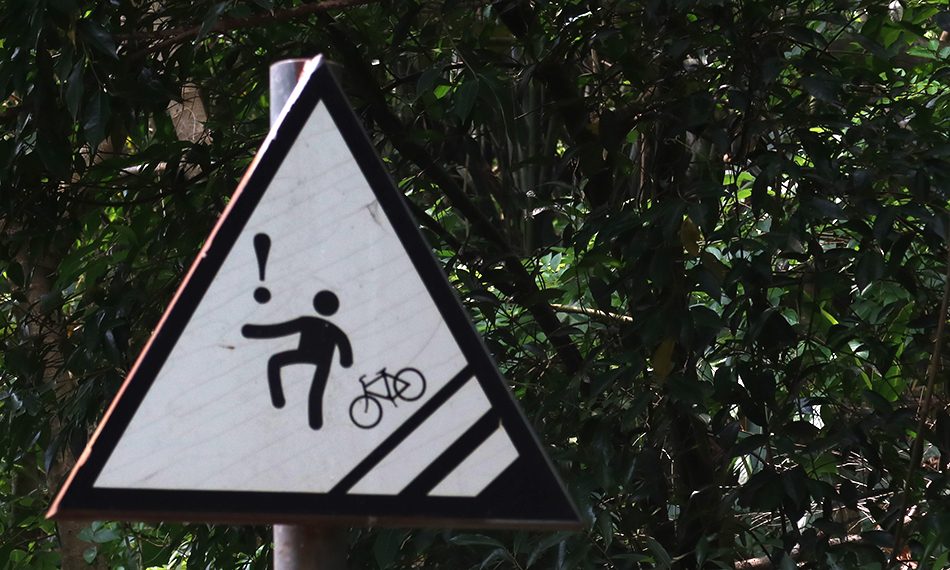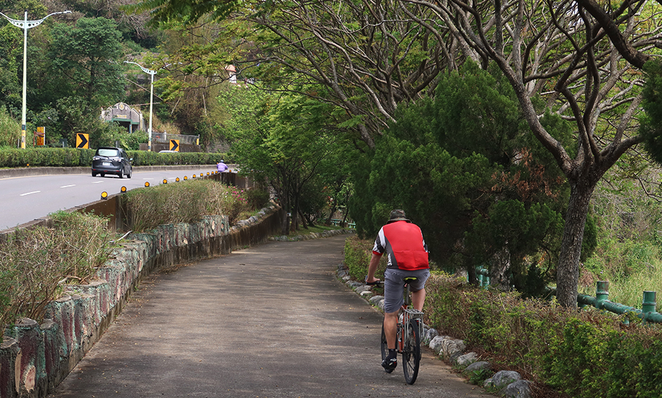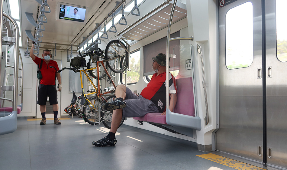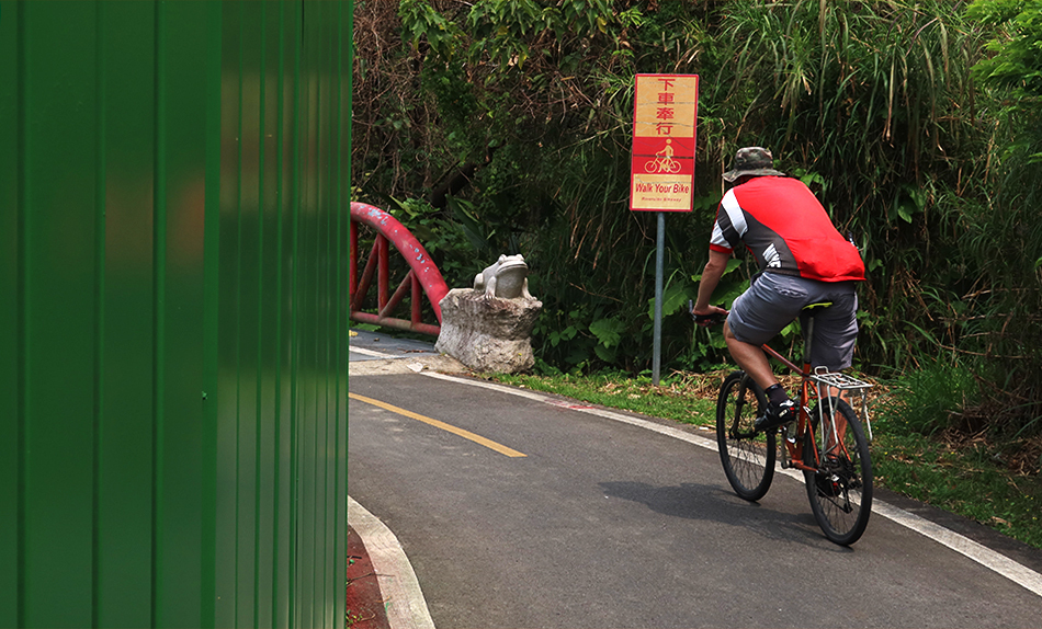 There are other people also out on bikes. A couple roadies on expensive machines come by, with others taking it steady on the rental U-bikes, plus one or two locals on their basic models with the seats really low. It's a good day for a ride, with the temp' around 26°C and some cloud cover.