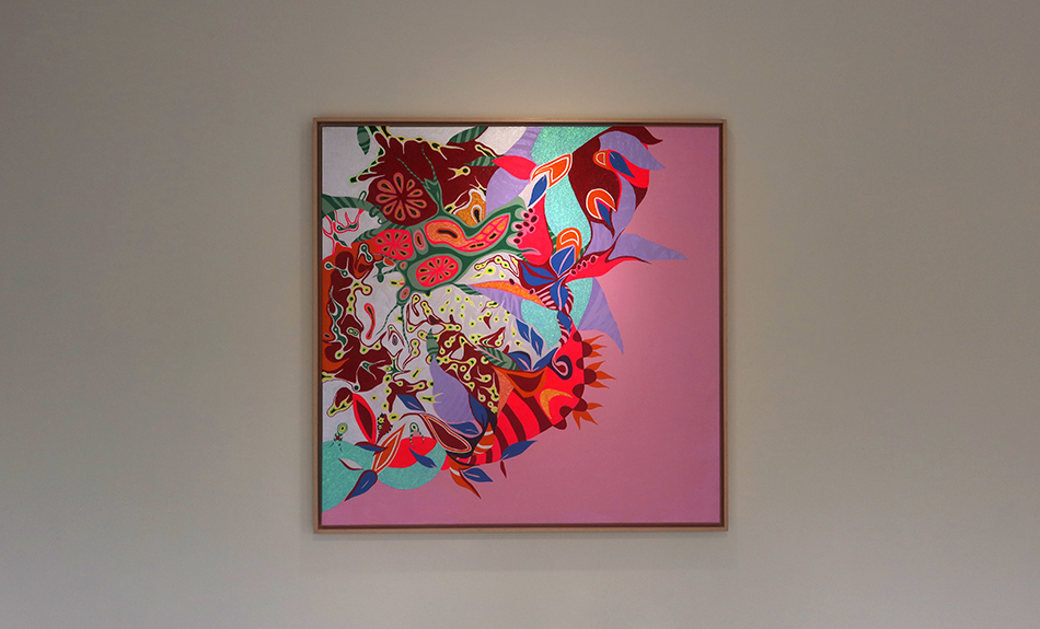I'm not sure what to expect, as I didn't do any research - it's just a place marked on Google Maps that has always tempted me - and standing outside it's unclear what New Tile House is used for as its closed, but right next door is a gallery that's open, so I push the glass door and venture inside. There's a recepton area displaying a psychedelic painting and a large sliding door that I open to take a look inside. There are a couple of large rooms hung with more paintings and as I wander around, a man in his 30s appears from a door connecting a back office area.