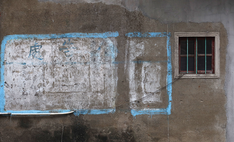 There's a track leading off the cycle path through greenery and I follow my nose and drop down a muddy route that feeds allotments and get to the wide but shallow Touqian. Sure enough, there are eight rows of square concrete blocks stretching across to the other side, each over three-feet by three-feet. They've been eroded by the flow of water, but the level is low today and it's safe to walk across them.