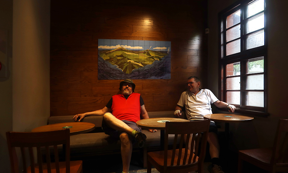 We sit, drink and confer. From Yingge, we could cycle over the nearby river and pedal back to the car on its northern bank, but looking at the time and considering the stiff climb involved, we decide it's best to simply retrace our tracks.