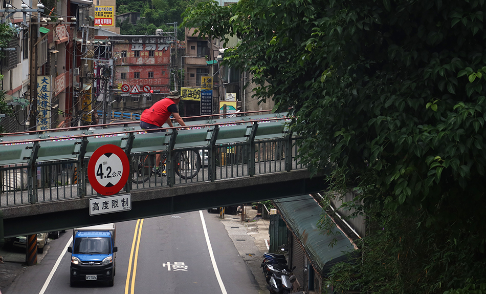 From Starbucks, we cruise down Yingge's main tourist street that's paved with smooth cobbles, past numerous shops selling all kinds of pottery, and at its end opt to go over a footbridge spanning both a street and the rail tracks, as it'll cut out some of the town's busy junctions.