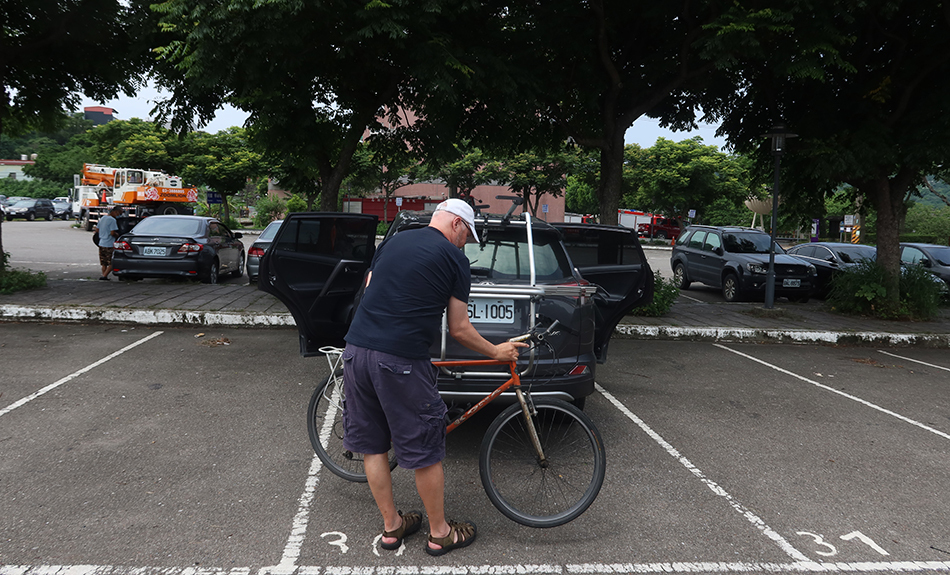 My plan today had been to get a train south just before 10 o'clock and ride back from Zhubei, but Ralph emails me at 8:30 and suggests taking the bikes on his car for ride up Happy Happy Valley. It's twice as happy as your usual valley. Good idea. An hour later we're off, with our bikes secured to a rack on the back of his Toyota.