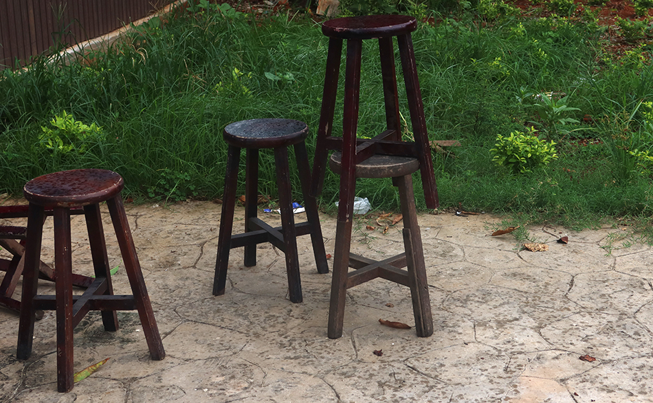 The wooden stools are still stacked there, but the small, yapping dog has gone, so I take a snap which doesn't look like it'll make the cover of National Geographic. At least it records the spots of rain that have begun to fall - something which actually began a few minutes ago. It's not serious and doesn't look like it's going to become so. Besides, sweat has already dampened my top and in another 15 minutes I'll be back home.