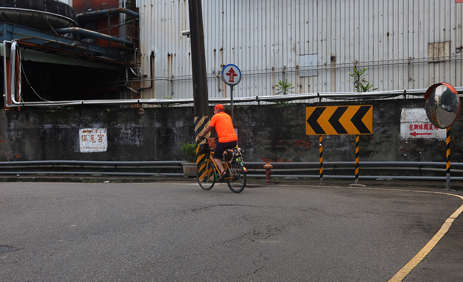 Once at the main road at the end, I head along for a few minutes with cars, then make a right and wind through a small industrial area, with steel-sheeted factories producing who knows what. A few people zip by on scooters, likely on their way to work or home or the shops, seemingly eager to be anywhere but here.
