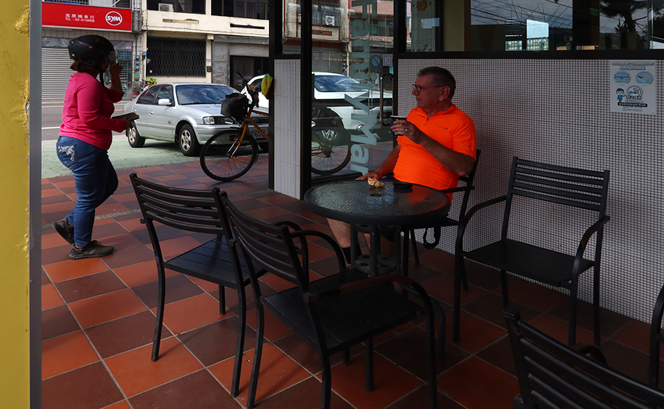 The highway rises gradually for a while and by the time I reach a couple of convenience stores, I'm ready to stop for a breather. It's almost 30 and my clothing is damp with sweat. There's a FamilyMart and a HI-Life - I choose the first and get a table outside. After this place, there's a long winding drop, then the testing climb begins.