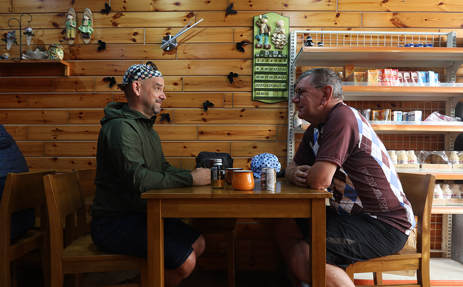 There's very little along teh 7 in terms of places to get a drink or a bite to eat. That's OK, as it's not long since breakfast, but we reach a familiar place that's relatively modern, set back with a large parking area out front. It's like a rest station without the gas pumps.