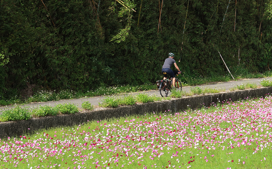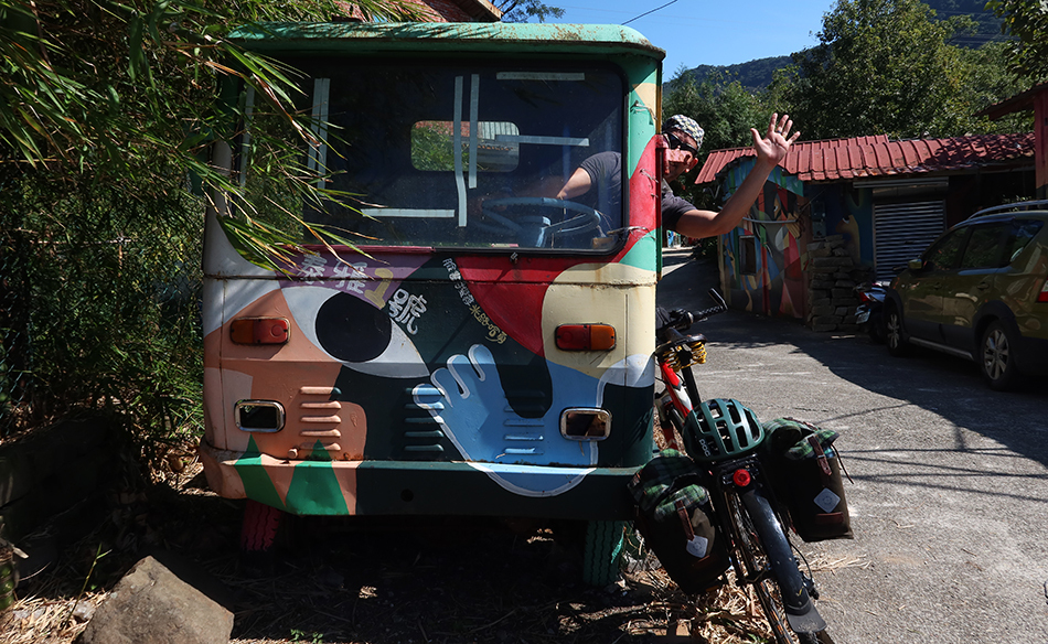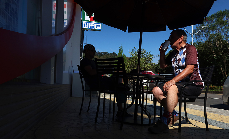 We zip down the 7 and it's not long - albeit about 20km - before we're in Daxi. The town is busy and we have no desire to look around, but I feel like I need some energy and have a craving for fruit, so we stop and I get a couple of large oranges. We sit in the shade and know the effort from the last few days has taken its toll.