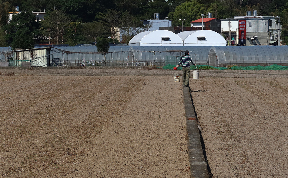 The fields are small and usually there's rice or something growing in them, but they're empty right now and remind us it's winter. There are lots of polytunnels around, with seedlings in some and others look like they've become redundant. It's quiet around here.