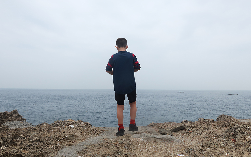 It turns out the resort has a nice cafe, which has a great view of the sea from its cliff-top perch and the four of us sit at a table in the shade and recuperate with cold drinks.