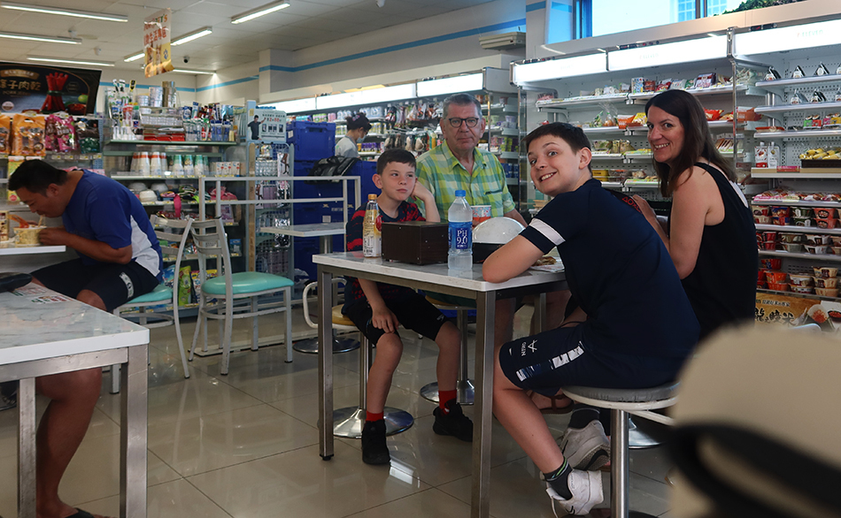 It's breakfast time so it's straight to nearby 7-Eleven for a bite to eat.