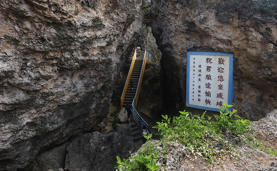 A short while later we pause at a temple complex for a few snaps and not long after we reach Black Devil Cave, which we didn't explore yesterday and opt to now. There's a stepped walking path that leads around a series of rocky cliffs and outcrops and the two boys run on ahead while I try to take snaps of them - without much success...