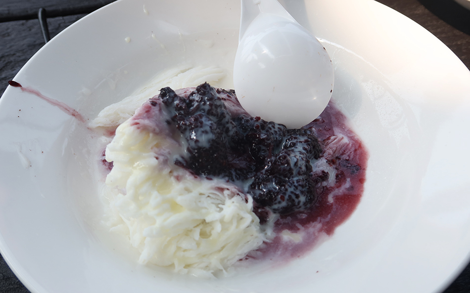 There's a couple of vendors near teh entrance and we decide to try the ice cream. The menu says 'mulberry' but a photo looks like it's made from blackberries. We also get some shaved ice cream made with chocolate Orioles. My diet has taken a real beating since the boys arrived.