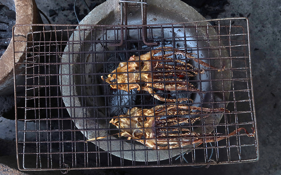 When we get to a fork, I take it and we start dropping down a concrete road, then soon veer off onto a rough track. I take it steady and my speed is slow when I hear that unmistable sound of a bike crashing and turn to see Charlie prostrate on the dusty track. He bounces back up and we continue down to the edge of a resort complex where we then inspect the damage.