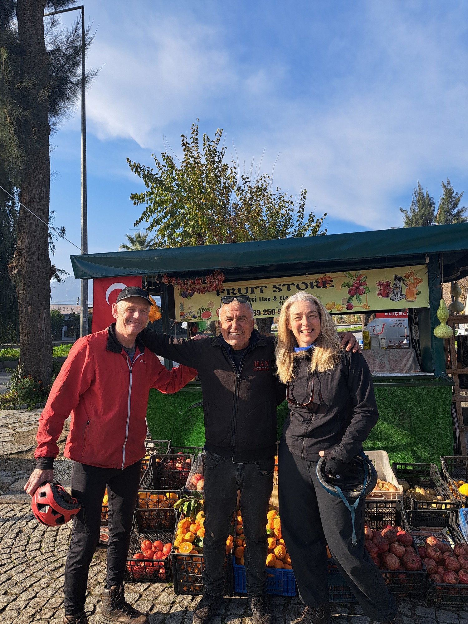 Olives are a part of everyday life in Turkiye. We cycled past olive groves all the time and ate olives daily. On December 20, as we were cycling to Lake Bafa, we stopped at the site of the ancient city of Euromos. The path to the site passed through an olive grove where a family was harvesting olives. We stopped to watch them work together. Two women were picking up olives that had fallen to the ground while others were busy spreading huge tarps under a tree to collect the olives that the men were shaking off using what looked like electric rakes with broad, vibrating teeth. Two or three bags full of olives were piled under each tree that had been harvested, no doubt providing the family with olives and olive oil for the year. That day, I felt a special connection with my friend Jackie as I could better appreciate the fond memories of her childhood in Italy she shared with me. Thank you, Jackie!
