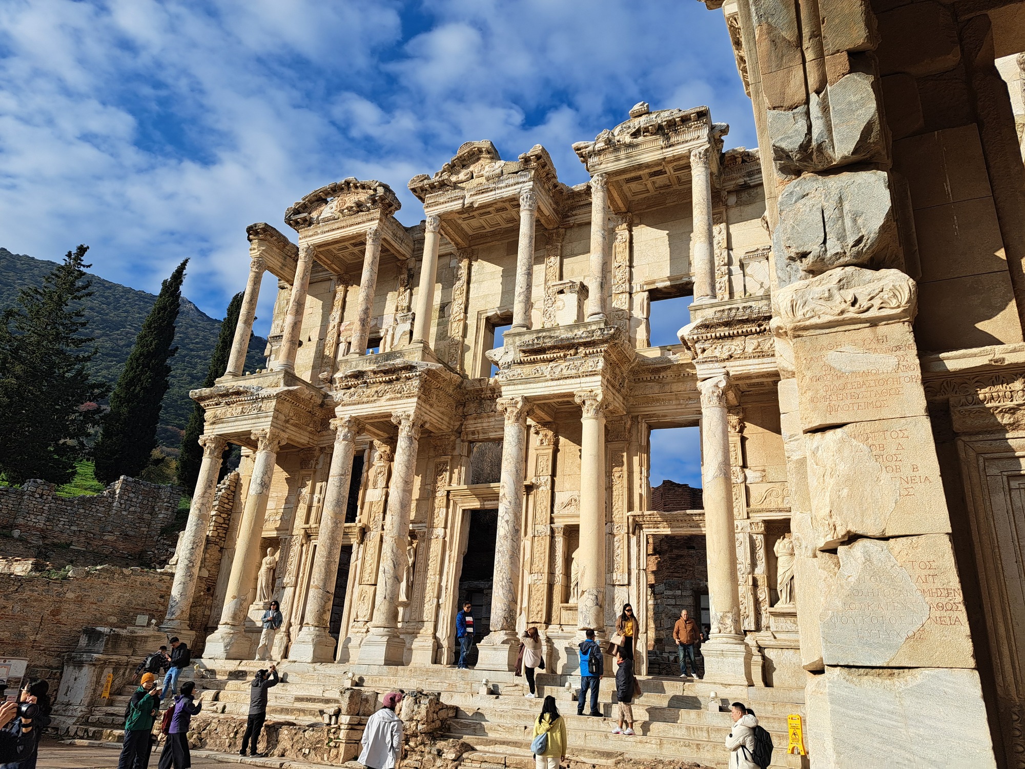 The southwest corner of Turkey is speckled with ancient ruins: Phaselis, Olympos, Xanthos, Euromos, Kaunos, Stratonikeia, Hirakleia, and - grandaddy of them all - Ephesus. Typically, each site has an agora, a theatre, temples, bathing houses, colonnaded streets, and a necropolis. Smooth-sided or fluted, marble or granite, the columns with their elaborately fashioned cornices point at the sky, endowing each city with classical grandeur. It is difficult to know, however, what structures are Lycian or Carian or Kaunean or Herakleian. The original inhabitants, around in the third and second centuries BC, were invaded and occupied, then the invaders were in turn invaded. Then came the all-conquering Romans in early AD.