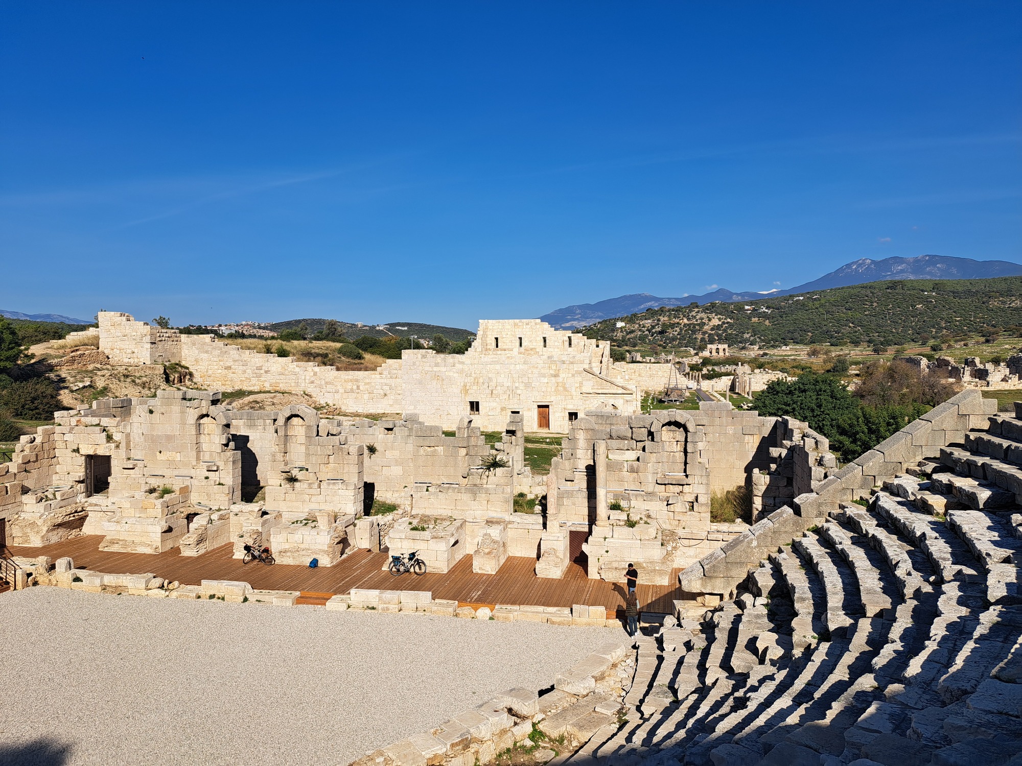 We have come to Patara to learn a bit about its classical origins. The Kingdom of Lycia stretched from Antalya to Dalyan in the 12th century BC and was invaded in turn by Persians, Athenians, Egyptians, and Romans. It takes a full day to walk around the ruins and appreciate the marks left by different empires. There's a necropolis with sarcophagi, a bouleuterion (look that one up!), a Roman bathing house, a collonaded street, and an ampitheatre. Emperor Nero built a lighthouse above the eighteen-kilometer beach. We have the ruins almost to ourselves. Sardinian Warblers, Black Redstarts, and Chiffchaffs flit about the olive trees; Great Egrets and Widgeon are in the reedy marsh nearby.