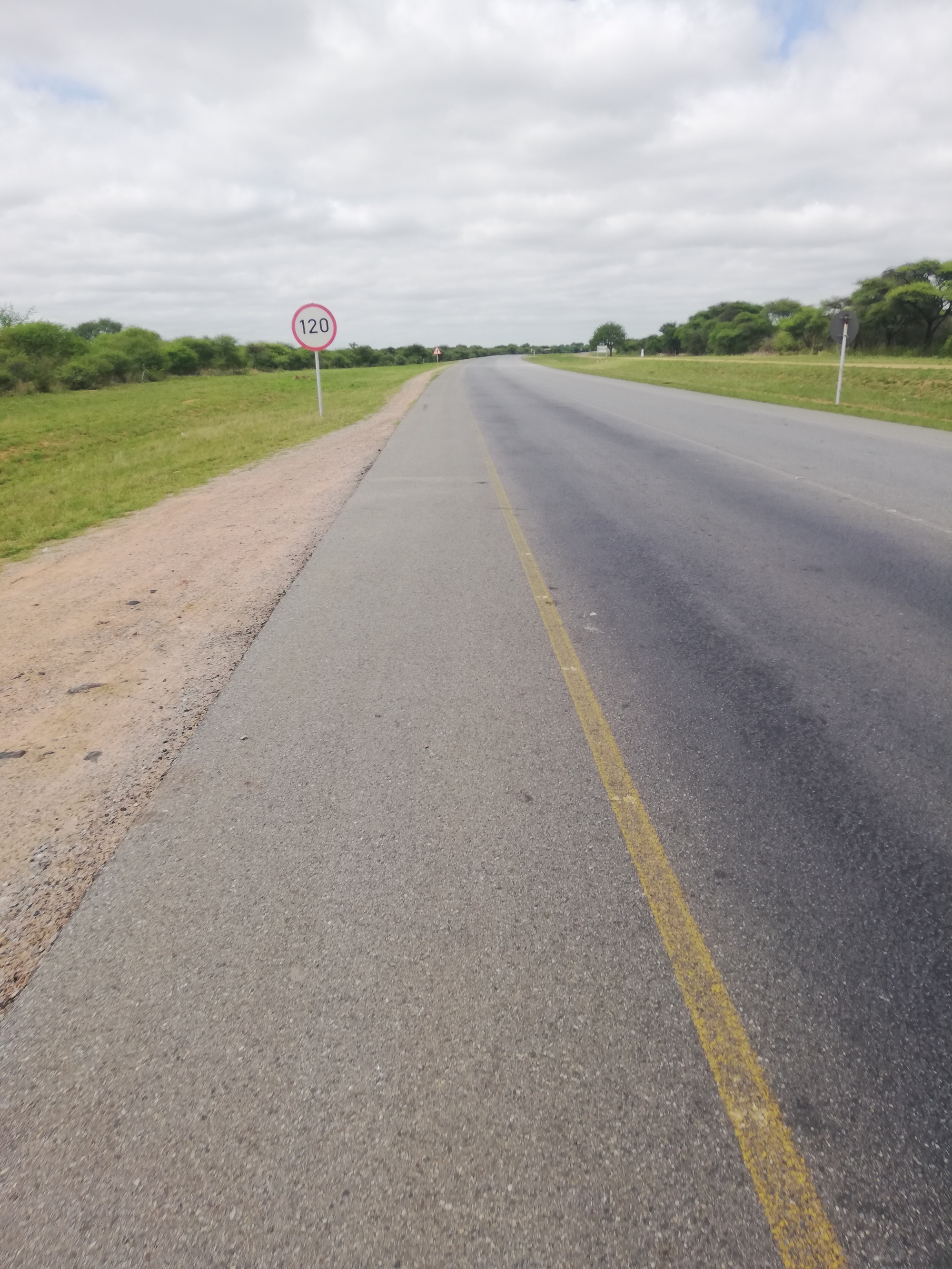 After an early breakfast and a lovely rest day, I was back on the road making my way out of Francistown. It was 8 am and the rush hour traffic was in full swing ... all 30 cars at once! As I rode round a bend in the road a police man on a motorbike pulled me over. My smile instinct kicked in "Good morning sir, how are you today", I asked. He wasn't having any of it. He asked all the usual questions which I answered with a fixed smile on my face. He finally asked why my bike didn't have reflectors... I explained that the patches on all four panniers, front and rear, were all reflectors (truth), and he was impressed. A smile beamed on his face at last. He asked how much i paid for the bike and I said "About 300 usd." To which he shook his head is disapproval. He was in goo spirits now. We fist pumped our goodbyes and he was on his way with wave after wishing me safe travels.